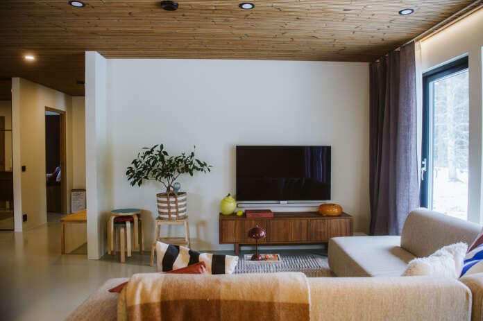 – Joo, esimerkiksi tämä olohuoneen seinäkään ei ole täysin valkoinen, vaikka se saattaa äkkiseltään siltä näyttää. Se on aika moneen kertaan sävytetty, että saatiin haluttu lopputulos, hän naurahtaa.